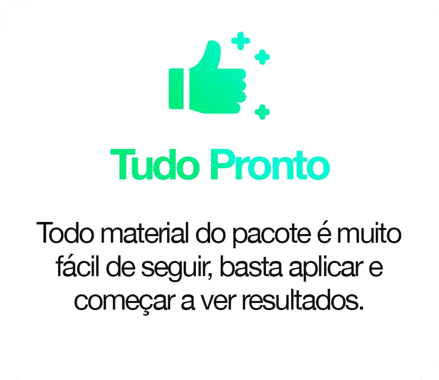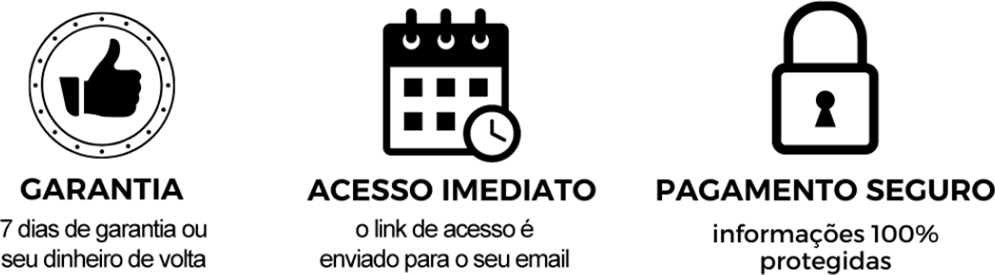 Você pode comprar todo o Pacote, assistir aos vídeos e…se, em 7 dias, achar que não era o que você procurava, eu te devolvo 100% do seu dinheiro. Na mesma hora. Sem burocracia.